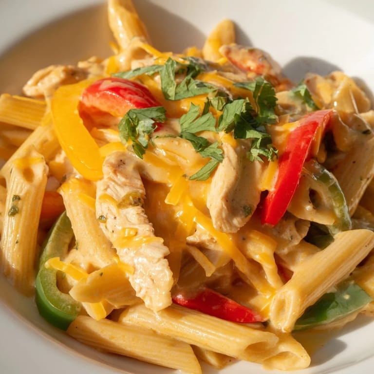Save The skillet was already crackling when my neighbor knocked on the door, drawn by the smell of cumin and paprika drifting through the hallway. I was testing this chicken fajita pasta for the third time that week, tweaking the spice balance until it felt just right. She ended up staying for dinner, and we ate straight from the pan with forks, laughing about how some of the best meals happen when you stop overthinking. That night taught me that one-pan dishes aren't just about convenience, they're about creating space for spontaneity. This recipe has been my weeknight anchor ever since.
