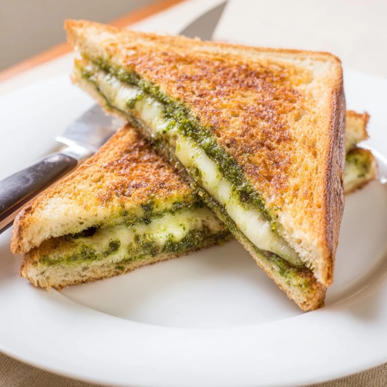 I made this for my sister one rainy Saturday when she showed up unannounced and starving. She sat at the counter, watched me blend the pesto, and declared it the best thing I'd made in months. We ate the sandwiches standing up, cheese still oozing, barely talking because we were too busy chewing. That's the kind of meal this is: simple, but it stops conversation.